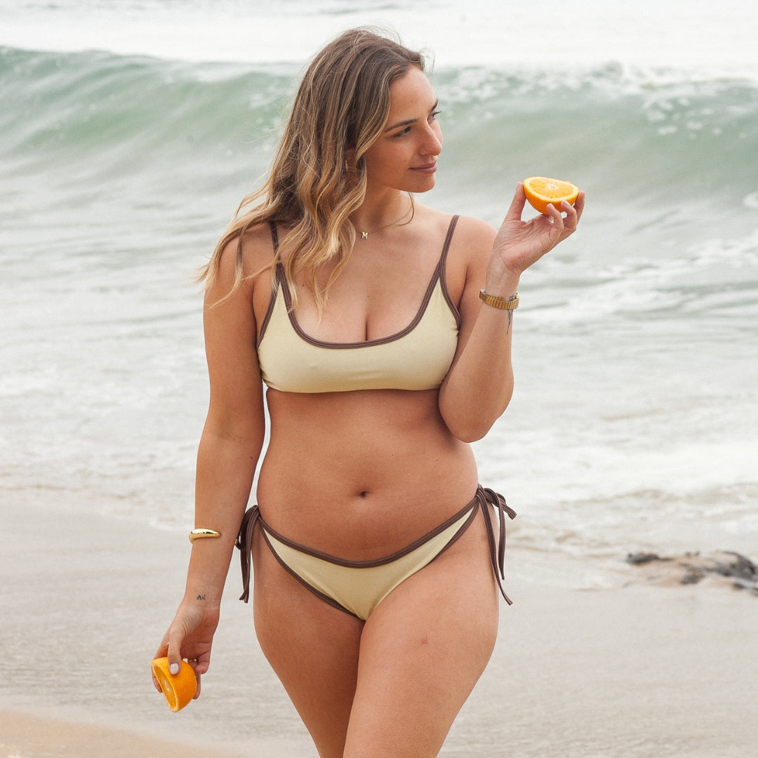 Top de bikini de lycra doble. Sostiene muy bien.